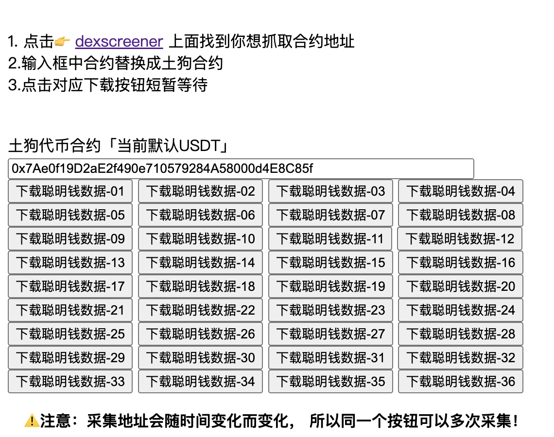 3.  点击下载对应数据, 会批量的返回一批 “聪明钱”钱包